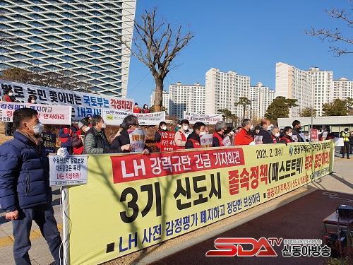 [½Åµ¿¾Æ¹æ¼Û´º½º=Ç㳪¿µ ±âÀÚ] °ø°øÁÖÅÃÁö±¸ Àü±¹¿¬´ë ´ëÃ¥ÇùÀÇȸ(¡¯°øÀüÇù¡¯)´Â Áö³­ 3ÀÏ ¿ÀÈÄ, ÁøÁÖ LHº»»ç Á¤¹® ¾Õ¿¡¼­ Á¦3±â ½Åµµ½Ã Á¶¼ºÀ» ¼­µÎ¸£´Â Á¤ºÎ¿Í LHÀÇ ¡®ÆÐ½ºÆ®Æ®·¢¡¯ Á¹¼Ó ÃßÁø Áß´ÜÀ» Ã˱¸ÇÏ°í ¡®°ø°øÀÚ°¡ÁÖÅá¯ÀÇ 3±â ½Åµµ½Ã °ø±Þ ¹Ý´ë, »çÀü°¨Á¤Æò°¡ ÆóÁö ¹× Á¤´çÇÑ º¸»ó ½ÃÇà µîÀ» ¿ä±¸ÇÏ´Â ±âÀÚȸ°ßÀ» °¡Á³½À´Ï´Ù.