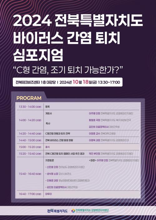 ½ÉÆ÷Áö¾öÀº µÎ °³ÀÇ ¼¼¼ÇÀ¸·Î ³ª´µ¾î ÁøÇàµÇ¾ú´Ù. ù ¹øÂ° ¼¼¼Ç¿¡¼´Â ¡ãCÇü°£¿° ÇöȲ°ú ÅðÄ¡ Àü·«(ÀÌÃ¢ÈÆ ÀüºÏ´ëÇб³º´¿ø ±³¼ö) ¡ãÀüºÏƯº°ÀÚÄ¡µµ ¹ÙÀÌ·¯½º °£¿° ¹ß»ý ÇöȲ(À̸í¿Á ÀüºÏƯº°ÀÚÄ¡µµ °¨¿°º´°ü¸®°úÀå) ¡ãCÇü°£¿° ÅðÄ¡ Ä·ÆäÀÎ ÃßÁø °æ°ú(°ûÁø ÀüºÏƯº°ÀÚÄ¡µµ °¨¿°º´°ü¸®Áö¿ø´Ü ºÎ´ÜÀå) µîÀÇ ¹ßÇ¥°¡ ÀÌ·ç¾îÁ³´Ù.