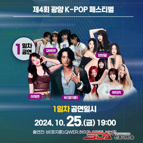 ÇÑÆí, Á¦4ȸ ±¤¾ç K-POP Æä½ºÆ¼¹úÀº 10¿ù 25Àϰú 26ÀÏ ¼¼´ë¿Í ÃëÇâÀ» ¾Æ¿ì¸£´Â ÃÖ°­ ¶óÀξ÷À¸·Î ½Ã¹Î°ú °ü±¤°´À» ¸Â´Â´Ù. ù³¯ÀÎ 25ÀÏ¿¡´Â ºñ, QWER, ÇÏÀÌŰ, ÀÌ俬, ºêºê°É, µÑ° ³¯Àº ¹ÚÁ¤Çö, ½Å¿ëÀç, ÀåÀ±Á¤, ±è¿¬ÀÚ µîÀÌ ´ë°Å Ãâµ¿ÇØ ½ºÆåÆ®·³ ³ÐÀº È­·ÁÇÑ ¹«´ë¸¦ ¼±»çÇÒ ¿¹Á¤ÀÌ´Ù.