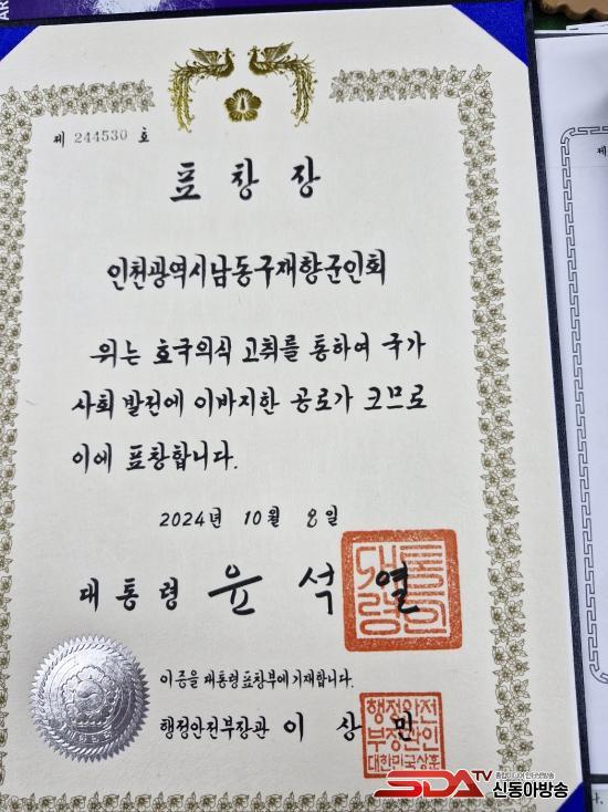 ³²µ¿±¸ ÀçÇⱺÀÎȸ´Â ±×µ¿¾ÈÀÇ Áö¿ª »çȸ ºÀ»ç¿Í È£±¹ ‧ ¾Èº¸ÀÇ½Ä °íÃë µî ±¹°¡ »çȸ ¹ßÀü¿¡ À̹ÙÁöÇÑ °ø·Î¸¦ ÀÎÁ¤¹Þ¾Æ ´ëÅë·É ǥâ ¼ö»óÀÇ ¿µ¿¹¸¦ ¾È¾Ò´Ù.