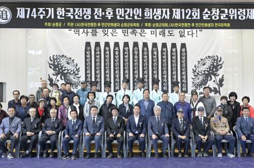 À̳¯ Çà»ç¿¡´Â ÃÖ¿µÀÏ ¼øÃ¢±º¼ö, ±èº¹¿µ Çѱ¹ÀüÀï ¹Î°£ÀÎÈñ»ýÀÚ Àü±¹À¯Á·È¸Àå, À¯º´È« ¼øÃ¢±ºÀ¯Á·È¸ÀåÀ» ºñ·ÔÇÑ À¯Á·È¸¿ø°ú º¸ÈÆ´Üü, Áö¿ªÁֹΠµî 100¿© ¸íÀÌ Âü¼®ÇØ Èñ»ýÀÚµéÀÇ ³ÌÀ» ±â·È´Ù.