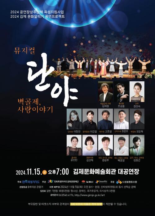 À̹ø °ø¿¬Àº ¿ì¸®³ª¶ó ¿ª»ç¿¡¼ °¡Àå ¿À·¡µÈ Àú¼öÁöÀÎ º®°ñÁ¦ÀÇ ¼³È¸¦ ÁÖÁ¦·Î ÇÏ´Â ¹ÂÁöÄà °ø¿¬À¸·Î ±èÁ¦½Ã(½ÃÀå Á¤¼ºÁÖ)¿Í Àü¹®¿¹¼ú¹ýÀÎ »ç)µå¸²ÇÊÀÌ ÀüºÏƯº°ÀÚÄ¡µµ °ø¿¬Àå »óÁÖ´Üü »ç¾÷À» ÇÔ²² ÁøÇàÇÏ¸ç ±èÁ¦½Ã¹Î°ú °ü°´À» À§ÇÑ °ø¿¬À» ¼±º¸ÀδÙ.