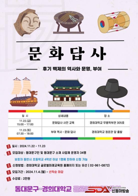 ¡®¹®È´ä»ç-Èı⠹éÁ¦ÀÇ ¿ª»ç¿Í ¹®¸í, ºÎ¿©¡¯ °Á´ ºÎ¿©ÀÇ ÁÖ¿ä À¯ÀûÁö ޹æ°ú °æÈñ´ëÇб³ Áß¾Ó¹Ú¹°°ü ±è¿ëÀº ±³¼öÀÇ ÇØ¼³·Î ÁøÇàµÇ´Â ¿ª»ç¹®È µµ½¼Æ® ÇÁ·Î±×·¥ÀÌ´Ù. ÀÌ ÇÁ·Î±×·¥Àº 11¿ù 22ÀÏ(±Ý)ºÎÅÍ 23ÀÏ(Åä)±îÁö ÀÌÆ² µ¿¾È ÁøÇàµÈ´Ù. 22ÀÏ(±Ý)¿¡´Â ¿ÀÈÄ 3½ÃºÎÅÍ 5½Ã±îÁö °æÈñ´ëÇб³¿¡¼ »çÀü ±³À°ÀÌ ÀÖÀ¸¸ç, 23ÀÏ(Åä)¿¡´Â °æÈñ´ë¿¡¼ Ãâ¹ßÇØ ºÎ¿©·Î À̵¿ÇÏ´Â ÇöÀå ´ä»ç°¡ ÀÌ·ç¾îÁø´Ù.