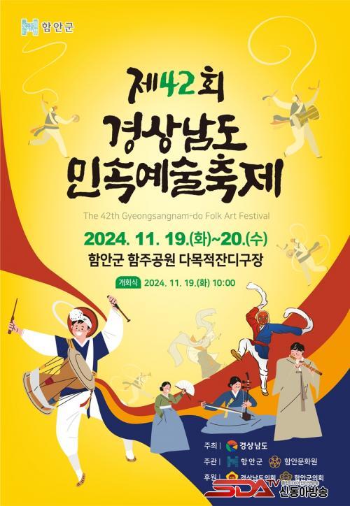 °æ³²¹Î¼Ó¿¹¼úÃàÁ¦´Â °æ»ó³²µµ¿¡¼ ÁÖÃÖÇϰí ÇԾȱº, ÇԾȹ®È¿øÀÌ °øµ¿ ÁÖ°üÇÏ¸ç °æ³²Áö¿ª ÀüÅë¹Î¼Ó ¿¹¼úÀÇ ¹ß±¼‧°è½ÂÀ» À§ÇØ 1968³â óÀ½ ´ëȸ¸¦ ½ÃÀÛÇØ ¿ÃÇØ 42ȸ°¸¦ ¸ÂÀÌÇÏ´Â °æ³² ÃÖ°íÀÇ ¹Î¼Ó¿¹¼ú ÃàÁ¦´Ù.»ç¶óÁ®°¡´Â Áö¿ªÀÇ ¹Î¼Ó¿¹¼úÀ» ¹ß±¼ÇØ °è½Â¡¤¹ßÀü½ÃŰ¸ç ¹®ÈÀ¯»êÀ¸·Î¼ÀÇ °¡Ä¡¸¦ ÀçÁ¶¸íÇÏ´Â ¿ªÇÒÀ» Çϰí ÀÖ´Ù.