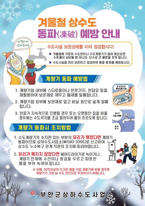 ºÎ¾È±ºÀº °¢ °¡Á¤ÀÌ °Ü¿ïö ¼öµµ°è·®±â µ¿ÆÄ·Î ÀÎÇÑ ºÒÆíÀ» °ÞÁö ¾Êµµ·Ï ¡®°Ü¿ïö »ó¼öµµ µ¿ÆÄ ¿¹¹æ¹ý¡¯¿¡ ´ëÇÑ È«º¸¹°À» Á¦ÀÛÇÏ¿© ±º ȨÆäÀÌÁö, ºÎ¾ÈÅåÅå, À¾¡¤¸é»ç¹«¼Ò µîÀ» ÅëÇØ È«º¸Çϰí ÀÖÀ¸¸ç °øµ¿ÁÖÅà µî¿¡ µ¿ÆÄ ¹æÁö¿ë º¸¿ÂÀ縦 Áö±Þ°èȹÀÓÀ» ¸»Çß´Ù.