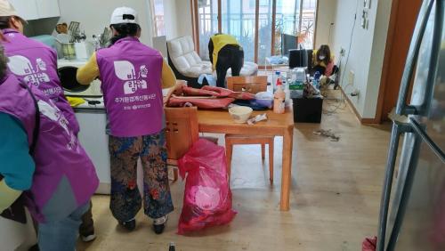 ¾ÆÄ§ ÀÏÂïºÎÅÍ ºÀ»ç´Ü¿øµé°ú ½Å°¡µ¿ Á÷¿øµéÀº ´ë»óÀÚ °¡Á¤À» ¹æ¹®ÇØ Áý¾ÈÀ» Á¤¸®Çϰí, ºÒÇÊ¿äÇÑ ¹°°ÇÀ» Á¤¸®ÇÏ´Â µî ´ë´ëÀûÀΠû¼Ò¸¦ ÁøÇàÇß´Ù.
