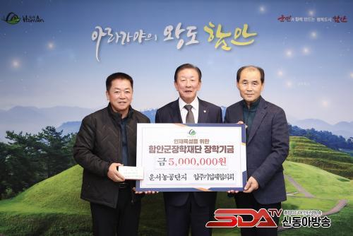 [½Åµ¿¾Æ¹æ¼Û °æ³²ÇÔ¾È=À̽ŵ¿±âÀÚ] ÇԾȱºÀåÇÐÀç´ÜÀº 27ÀÏ ¿ÀÀü Ä¥¿ø¿î¼­³ó°ø´ÜÁö ÀÔÁÖ±â¾÷üÇùÀÇȸ¿¡¼­ ÀåÇбâ±Ý 500¸¸ ¿øÀ» ±âŹÇß´Ù°í ¹àÇû´Ù.