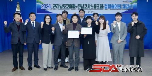 [½Åµ¿¾Æ¹æ¼Û Àü³²=À̽ŵ¿±âÀÚ] Àü¶ó³²µµ±³À°Ã»°ú Àü³²±³»ç³ëµ¿Á¶ÇÕÀº 27ÀÏ Àü¶ó³²µµ±³À°Ã» ÁßȸÀǽǿ¡¼­ ³ë»ç ¾çÃø °ü°èÀÚµéÀÌ Âü¼®ÇÑ °¡¿îµ¥ ¡®2024³â Á¤Ã¥ÇùÀÇȸ ü°á½Ä¡¯À» °¡Á³´Ù.