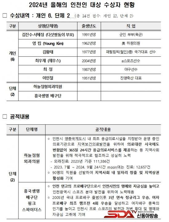 ¡®¿ÃÇØÀÇ ÀÎõÀÎ ´ë»ó¡¯Àº 2015³â ½ÃÀÛµÇ¾î ¿ÃÇØ·Î 10ȸ°¸¦ ¸ÂÀÌÇßÀ¸¸ç, ÀÎõ ½Ã¹ÎÀÇ ÀÚ±à½ÉÀ» ³ôÀÌ°í ½Ã ¹ßÀü¿¡ ±â¿©ÇÑ Àι°À» ¹ß±¼ÇØ °øÀûÀ» ³Î¸® ¾Ë¸®´Â µ¥ ¸ñÀûÀÌ ÀÖ´Ù. Áö³ÇرîÁö °³ÀÎ 34¸í, ´Üü 14°÷ÀÌ ¼ö»óÇß´Ù.