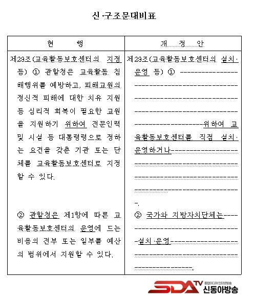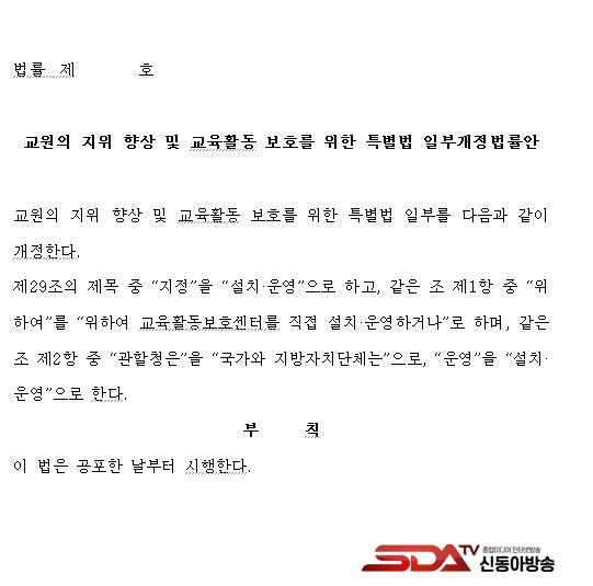 [½Åµ¿¾Æ¹æ¼Û ÀÎõ= À±¹Î½Ä±âÀÚ]±¹È¸ ±³À°À§¿øÈ¸ ¹é½Â¾Æ ÀÇ¿ø(´õºÒ¾î¹ÎÁÖ´ç)ÀÌ ±³À°È°µ¿º¸È£¼¾ÅÍÀÇ ½ÇÁ¦ ¿î¿µ ¹æ½Ä°ú ¹ý·ü ±ÔÁ¤À» ÀÏÄ¡½Ã۰í, ±¹°¡¿Í ÁöÀÚü ¿¹»ê Áö¿øÀÇ ¹ýÀû ±Ù°Å¸¦ ¸¶·ÃÇϱâ À§ÇÑ ¡¸±³¿øÀÇ ÁöÀ§ Çâ»ó ¹× ±³À°È°µ¿ º¸È£¸¦ À§ÇÑ Æ¯º°¹ý¡¹ ÀϺΰ³Á¤¹ý·ü¾ÈÀ» ¹ßÀÇÇÏ¿´´Ù.