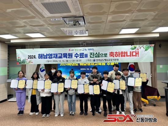 [½Åµ¿¾Æ¹æ¼Û Àü³²Çس²=À̽ŵ¿±âÀÚ] ÇØ³²±³À°Áö¿øÃ»Àº 2024³â 12¿ù 16ÀÏ, ÇØ³²¿µÀç±³À°¿ø ¼ö·á½ÄÀ» ÁøÇàÇß´Ù. À̹ø ¼ö·á½Ä¿¡´Â ¿µÀç±³À°¿ø Çлý, Çкθð, Áöµµ±³»ç µî 100¿© ¸íÀÌ Âü¼®ÇßÀ¸¸ç, ÇлýµéÀÇ ³ë·Â°ú ¼ºÀåÀ» ÃàÇÏÇÏ°í ¹Ì·¡ÀÇ Ã¢ÀÇÀû ÀÎÀç·Î¼­ÀÇ °¡´É¼ºÀ» ÀÀ¿øÇÏ´Â ÀÚ¸®°¡ µÇ¾ú´Ù.