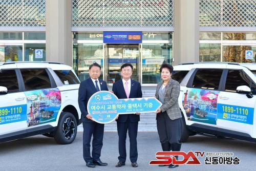 »çÁø=¿©¼ö½Ã(½ÃÀå Á¤±â¸í)´Â Áö³­ 24ÀÏ ½Ãû Çö°ü¿¡¼­ ¿©¼ö»ó°øÈ¸ÀÇ¼Ò Çѹ®¼± ȸÀåÀ¸·ÎºÎÅÍ 1¾ï ¿ø »ó´çÀÇ Àå¾ÖÀÎ ÄÝÅýà 2´ë¸¦ ±âÁõ¹Þ¾Ò´Ù°í ¹àÇû´Ù. (»çÁø ¿ÞÂʺÎÅÍ Çѹ®¼± ¿©¼ö»ó°øÈ¸ÀÇ¼Ò È¸Àå, Á¤±â¸í ¿©¼ö½ÃÀå, ÃÖÇöÁ¤ ±³Åë¾àÀÚ À̵¿Áö¿ø¼¾ÅÍ ¼¾ÅÍÀå)