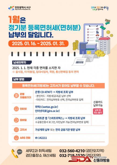 1¿ù Á¤±âºÐ µî·Ï¸éÇã¼¼(¸éÇã)´Â 2025³â 1¿ù 1ÀÏ ÇöÀç À½½ÄÁ¡, ÀÌ¡¤¹Ì¿ë¾÷, ÀÓ´ë»ç¾÷ÀÚ, Çпø, Åë½ÅÆÇ¸Å¾÷ µîÀÇ °¢Á¾ ¸éÇ㸦 ¼ÒÁöÇÑ ÀÚ¿¡°Ô ºÎ°úµÈ´Ù. °Ë´Ü ¿Ü Áö¿ª ¸éÇã¼¼ ¹®ÀÇ´Â ¼¼¹«2°ú Ãëµæ¼¼ÆÀ(¢Ï032-560-4210)À¸·Î, °Ë´ÜÁö¿ª ¸éÇã¼¼ ¹®ÀÇ´Â °Ë´ÜÃâÀå¼Ò Àç»ê¼¼ÆÀ(¢Ï032-718-1520)À¸·Î ÇϸéµÈ´Ù.