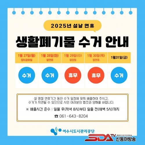 ¿©¼ö½Ãµµ½Ã°ü¸®°ø´Ü, ¼³ ¸íÀý¸ÂÀÌ ÁýÁß Ã»¼Ò±â°£ ¿î¿µ ¹× ÈÞ¹« ¾È³»