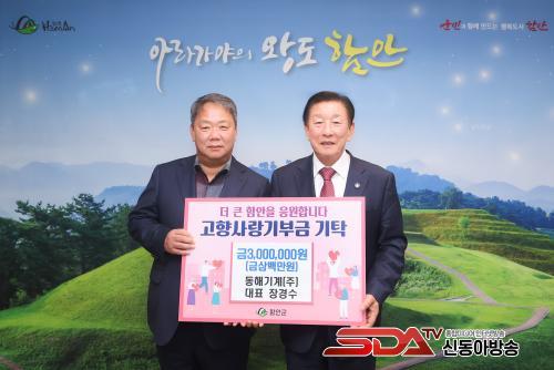 [½Åµ¿¾Æ¹æ¼Û °æ³²ÇÔ¾È=À̽ŵ¿±âÀÚ] ÇԾȱºÀº 20ÀÏ µ¿Çرâ°è(ÁÖ) Àå°æ¼ö ´ëÇ¥°¡ ÇԾȱº¿¡ °íÇâ»ç¶û±âºÎ±Ý 300¸¸¿øÀ» ±âºÎÇß´Ù°í ¹àÇû´Ù.