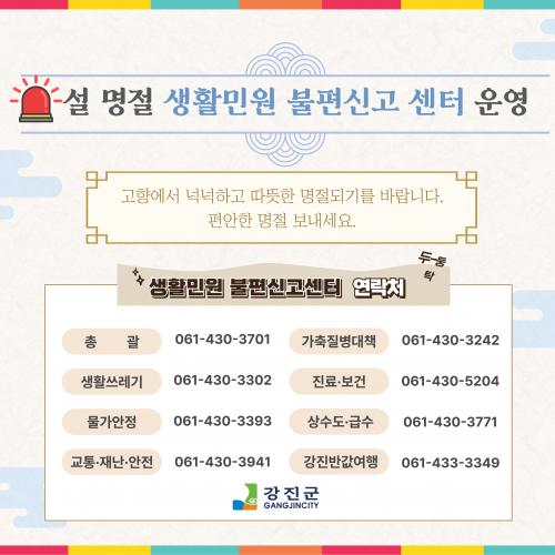 °­Áø±º, ¼³ ¿¬ÈÞ ÁÖ¹ÎºÒÆíÇØ¼Ò »ýȰ¹Î¿ø ºÒÆí½Å°í¼¾ÅÍ ¿î¿µ