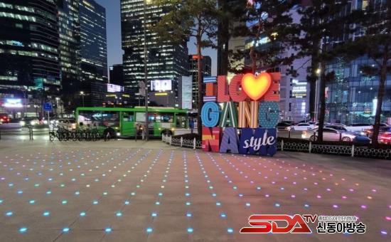 °¡Àå ¸ÕÀú ´«±æÀ» »ç·ÎÀâ´Â °÷Àº °³²¿ª 11¹ø°ú 12¹ø Ãⱸ »çÀÌÀÇ °³²½ºÄù¾î ±¤ÀåÀÇ º¯½ÅÀÌ´Ù. À̰÷¿¡ ¡®°¡½¿ ¶Ù°í ¼³·¹´Â °³²¿ª¡¯À̶ó´Â ÄܼÁÆ®¸¦ ´ãÀº »ó¡Á¶Çü¹°À» ¼³Ä¡ÇØ ÀÌ»ö Æ÷Åä ½ºÆÌÀ» ¸¸µé¾ú´Ù. ¡®I¢½GANGNAM style¡± ±ÛÀÚ·Î ±¸¼ºµÈ 3.8m ³ôÀÌÀÇ Á¶Çü¹°À» ¼¼¿ì°í, µÎ±Ù°Å¸®´Â ½ÉÀåÀ» ÇÏÆ®·Î Ç¥ÇöÇß´Ù. ¹Ù´Ú¿¡´Â ´ÙÀ̳ª¹ÍÇÑ LED Á¶¸íÀ» ±ò¾Æ ȸ»öºû ±¤Àå¿¡ »ý¸í·ÂÀ» ºÒ¾î³Ö¾ú´Ù.
