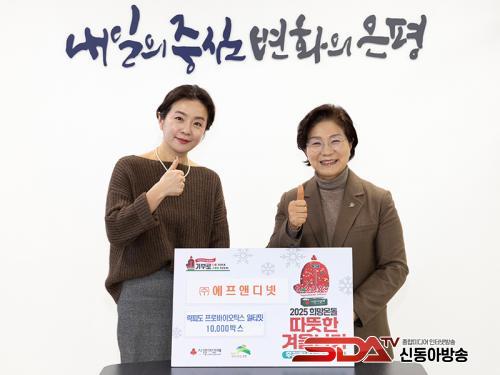 ÁÖ½Äȸ»ç ¿¡ÇÁ¾Øµð³ÝÀº ¶ôÇǵµ ÇÁ·Î¹ÙÀÌ¿Àƽ½º ¾óƼ¹Ô 1¸¸ ¹Ú½º¸¦ ±âºÎÇß´Ù. ±¸´Â Àü´Þ¹ÞÀº ¼ºÇ°À» °ü³» »ýȰÀÌ ¾î·Á¿î °¡±¸¿¡ Àü´ÞÇß´Ù.