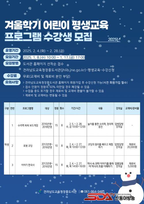 À̹ø °Ü¿ïÇб⿡´Â ¼ö¸®·Â ¾¦¾¦ º¸µå°ÔÀÓ(1~3Çгâ), ·Îº¿ ÄÚµù(3~6Çгâ), À̾߱â Çѱ¹»ç(3~6Çгâ) ÃÑ 3°³ ÇÁ·Î±×·¥ÀÌ ¿î¿µµÈ´Ù.