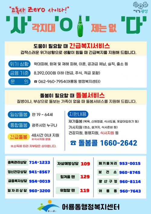 [½Åµ¿¾Æ¹æ¼Û=À强űâÀÚ] ±¤ÁÖ ±¤»ê±¸ ¾î·æµ¿(µ¿Àå ÀÌÁÖ³²)ÀÌ °íµ¶»ç¸¦ ¿¹¹æÇÏ´Â ¡®Zero(Á¦·Î) »çÀÌ´Ù(»ç°¢Áö´ë ÀÌÁ¦´Â ¾ø´Ù)¡¯ »ç¾÷À» ÃßÁøÇÑ´Ù.