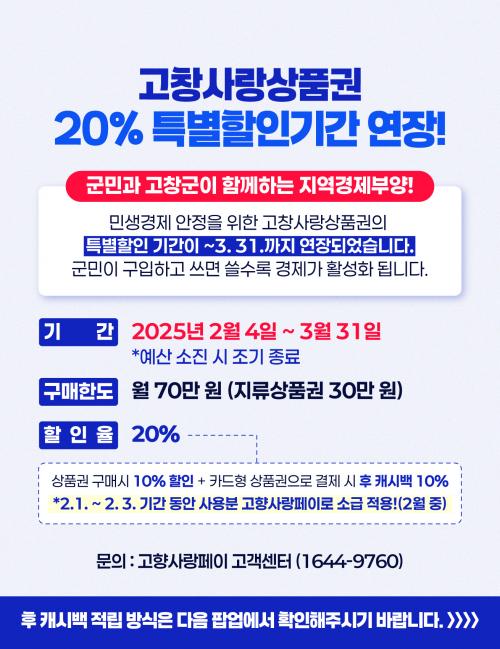 5ÀÏ °íⱺ¿¡ µû¸£¸é ´çÃÊ 1¿ù¸»±îÁö¿´´ø ¡®°íâ»ç¶û»óǰ±Ç 20%Ưº°ÇÒÀΡ¯ ÇýÅÃÀ» ¿À´Â 3¿ù±îÁö ¿¬Àå ½ÃÇàÇÑ´Ù.