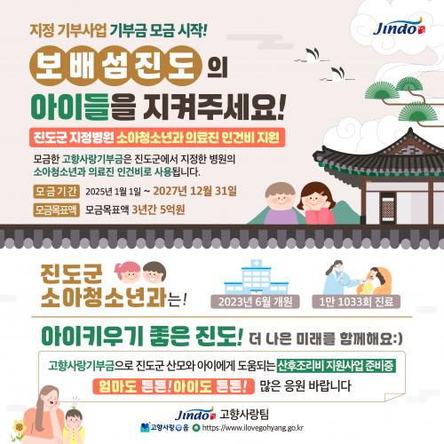 ±âºÎ¿¡ Âü¿©ÇÏ·Á¸é °íÇâ»ç¶ûeÀ½(www.ilovegohyang.go.kr)¿¡ Á¢¼ÓÇÑ ÈÄ ¡®Áøµµ±º ƯÁ¤»ç¾÷¿¡ ±âºÎÇϱ⡯¸¦ ¼±ÅÃÇØ 10¸¸ ¿ø ÀÌ»ó ±âºÎÇϰí, ´ä·Êǰ±îÁö ÁÖ¹®Çϸé ÀÚµ¿ÀÀ¸ð°¡ µÈ´Ù.