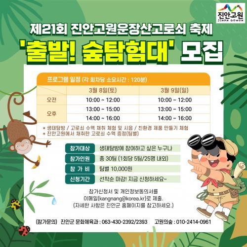Âü°¡ ¸ðÁý ÁßÀÎ ÇÁ·Î±×·¥Àº ¡®Ãâ¹ß! °í·Î¼è ½£ ŽÇè´ë¡¯·Î °í·Î¼è ¼ö¾× äÃë üÇè, ½£ ³îÀÌ, ģȯ°æ ¸¸µé±â¸¦ ÇÑ ¹ø¿¡ °æÇèÇÒ ¼ö ÀÖ¾î ÇØ¸¶´Ù °ü¶÷°´µé¿¡°Ô ¸¹Àº Àα⸦ ²ø°í ÀÖ´Ù.