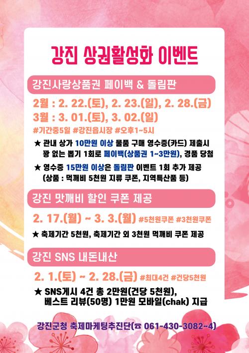 À̹ø À̺¥Æ®´Â »ó°¡ ¹æ¹® ¹× ¼Òºñ ÃËÁø À¯µµ¿Í °ÁøÀ¾ »ó±ÇÀÇ È°·ÂÀ» ºÒ¾î³Ö±â À§ÇØ ÁøÇàµÈ´Ù. ÁÖ¿ä À̺¥Æ®·Î´Â °Áø»ç¶û»óǰ±Ç ¿µ¼öÁõ ÆäÀ̹é À̺¥Æ®, ²Î ¾ø´Â µ¹¸²ÆÇ À̺¥Æ®, ¡®°Áø¸À±úºñ¡¯ ¸Ô±úºñ ÇÒÀÎ À̺¥Æ®, SNS ³»µ·³»»ê Ưº° À̺¥Æ® µîÀÌ ÀÖ´Ù.