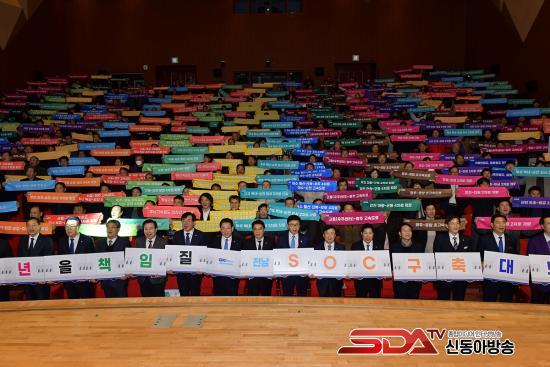 ½Ã¿¡ µû¸£¸é À̹ø °áÀÇ´ëȸ´Â ¡®Àü³² SOC ±¸Ãà ´ëµµ¾àÀÇ ½Ã´ë¸¦ ¿ÀÚ!¡¯¶ó´Â ½½·Î°Ç ¾Æ·¡ ±è¿µ·Ï Àü³²µµÁö»ç, ±èÅÂ±Õ Àü³²µµÀÇȸ ÀÇÀå, Á¤±â¸í ¿©¼ö½ÃÀåÀ» ºñ·ÔÇÑ 16°³ ½Ã±º ½ÃÀ塤±º¼ö, Áö¿ª ÁֹΠµî 200¿© ¸íÀÌ Âü¼®ÇÑ °¡¿îµ¥ ÁøÇàµÆ´Ù.