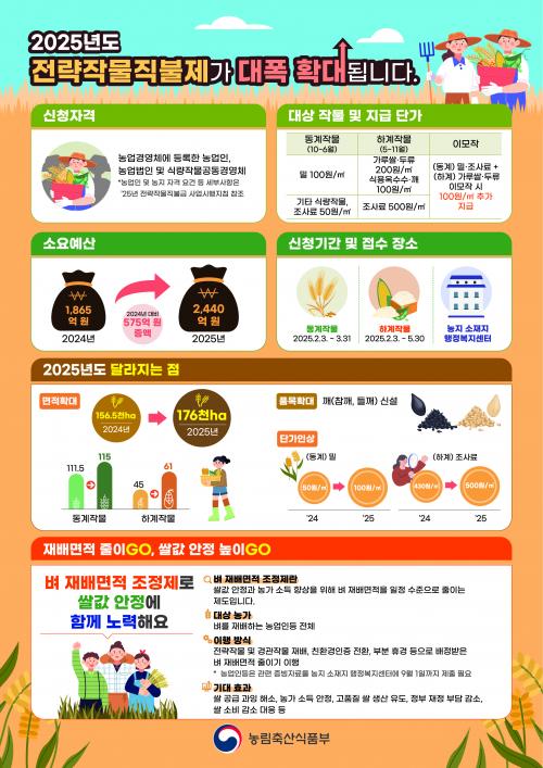 Àü·«ÀÛ¹°Á÷ºÒÁ¦µµ´Â ³í¿¡ ¹ä½Ò¿ë º Àç¹è¸¦ ´ëüÇÏ¿© ¹Ð, Äá, °¡·ç½Ò µî ¼öÀÔ ÀÇÁ¸µµ°¡ ³ôÀº Àü·«ÀÛ¹°À̳ª ÇϰèÁ¶»ç·á¸¦ Àç¹èÇÏ´Â ³ó¾÷Àΰú ³ó¾÷¹ýÀο¡°Ô Á÷ºÒ±ÝÀ» Áö±ÞÇÏ´Â Á¦µµ´Ù.