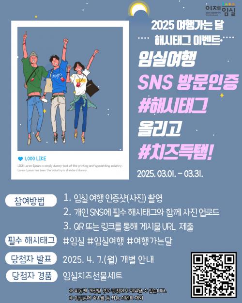 À̹ø À̺¥Æ®´Â 3¿ù Áß ÀÓ½ÇÀ» ¹æ¹®Çϰí ÀÓ½Ç ¿©Çà ÀÎÁõ»çÁøÀ» °³ÀÎ SNS¿¡ Çʼö ÇØ½Ãű×(#ÀÓ½Ç, #Àӽǿ©Çà, #¿©Çà°¡´Â´Þ)¿Í ÇÔ²² ¾÷·ÎµåÇÑ ÈÄ À̺¥Æ® ÆäÀÌÁö(https://naver.me/x8toNSRh)¸¦ ÅëÇØ °Ô½Ã¹° URLÀ» Á¦ÃâÇÏ¿© Âü¿©ÇÒ ¼ö ÀÖ´Ù.
