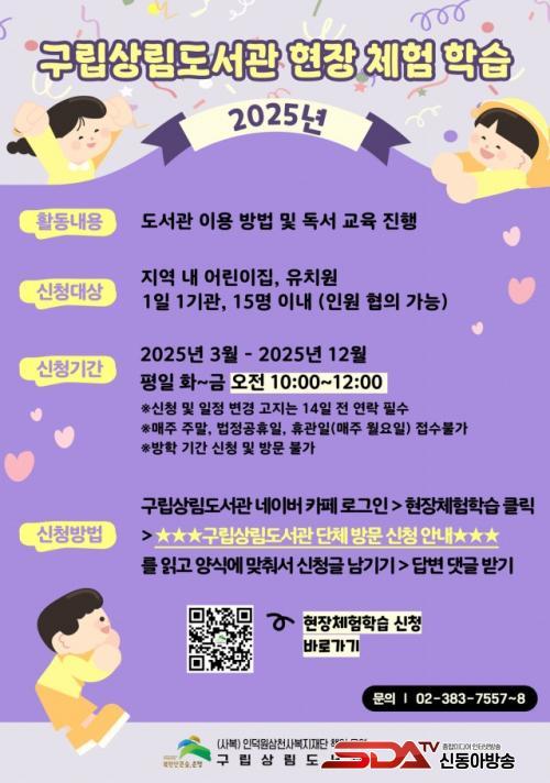 ½ÅûÀº °ü³» ¾î¸°ÀÌÁý ¶Ç´Â À¯Ä¡¿øÀ» ´ë»óÀ¸·Î 1ÀÏ 1±â°ü 15¸í À̳»·Î ¹Þ´Â´Ù. ÇöÀå üÇè ÇнÀ ÇÁ·Î±×·¥Àº µµ¼°ü ÀÌ¿ë ¹æ¹ý°ú °è±âº° µµ¼ ½ºÅ丮ÅÚ¸µ°ú µ¶ÈÄ È°µ¿ÀÌ ÁøÇàµÇ¸ç, º»ÀÎ À̸§À¸·Î µÈ ȸ¿øÁõÀ» ÁöÂüÇÏ¸é µµ¼ ´ëÃâ üÇèµµ °¡´ÉÇÏ´Ù.