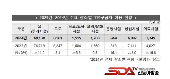 ȯÀÚ ¹ß»ý Àå¼Òº°·Î´Â Áý 68,138°Ç(61.9%), µµ·Î‧µµ·Î¿Ü ±³ÅëÁö¿ª 18,064°Ç(16.4%), »ó¾÷½Ã¼³ 6,897°Ç(6.3%) ¼øÀ̾úÀ¸¸ç, Àü³â ´ëºñ ¿À¶ô/¹®È½Ã¼³ 148°Ç(9.5%), ¿îµ¿½Ã¼³ 131°Ç(16.1%) µîÀÌ Áõ°¡ÇÑ °ÍÀ¸·Î ³ªÅ¸³µ´Ù.