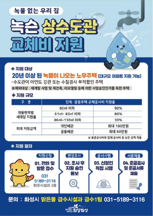 Áö¿ø ´ë»óÀº 20³â ÀÌ»ó ³ëÈÄÁÖÅà Áß ³ì¹°ÀÌ ¹ß»ýÇÏ´Â ¿¬¸éÀû 130§³ ÀÌÇÏ ´Üµ¶ ÁÖÅÃÀÇ ¿Á³» ±Þ¼ö°ü ¶Ç´Â °øµ¿ÁÖÅÃÀÇ °ø¿ë¹è°ü ±³Ã¼ µî¿¡ ¼Ò¿äµÇ´Â °ø»çºñ´Ù.