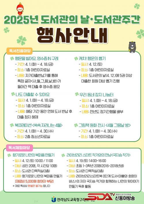 µµ¼°üÀÇ ³¯À» ¸Â¾Æ 4¿ù 12ÀÏ(Åä) ´çÀÏ¿¡´Â ÀÚ·á½ÇÀ» ÀÌ¿ëÇÑ ´ëÃâ ȸ¿øÀ» ´ë»óÀ¸·Î <ijġ! Çà¿îÀÇ »Ì±â>Çà»ç¿Í ³ª¸¸ÀÇ Çâ±â¸¦ ´ãÀº <Çâ±â·Î¿î ³ª¸¸ÀÇ ºÏÆÛǾ ¸¸µé±â>üÇèÀÌ ¿î¿µµÇ¸ç, 4¿ù 19ÀÏ(Åä)¿¡´Â Àü¶ó³²µµ±³À°Ã» ¼Ò¼Ó µµ¼°ü »ç¼µé°ú »ç¼±³»çµéÀÌ ¼±Á¤ÇÑ ´Ü°èº° ±ÇÀåµµ¼ ¸ñ·ÏÀÎ ¶óÀ̺귯¸® ½ºÅ¸Æ®ºÏ¿¡ ¼ö·ÏµÈ µµ¼ ¡¸¾Æºü¿Í È£¶ûÀÌ ¹ö½º¡¹ÀÇ ÀúÀÚ ±¹Áö½Â ÀÛ°¡¿ÍÀÇ ¸¸³²À» ÅëÇØ µµ¼¿Í ¿¬°èµÈ üÇèÇü µ¶ÈÄ È°µ¿ÀÌ ÁøÇàµÉ ¿¹Á¤ÀÌ´Ù.