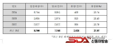 ¡Û ÃÖ±Ù 3³â°£ 8,266°³¼ÒÀÇ ´ë»ó¿¡ ´ëÇÏ¿© ÈÀç¾ÈÀüÁ¶»ç¸¦ ½Ç½ÃÇÑ °á°ú, À§¹Ý ³»¿ëÀ¸·Î Àû¹ßµÈ ´ë»óÀº 1,018°³¼Ò, ºÒ·®·ü 12.32%¿¡ ´ÞÇÏ´Â °ÍÀ¸·Î ³ªÅ¸³µ´Ù.