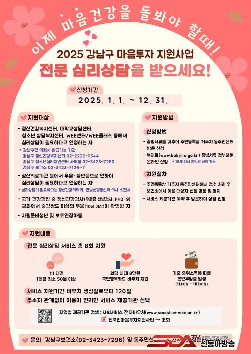 ¡®¸¶À½ÅõÀÚ Áö¿ø»ç¾÷¡¯Àº ¿ì¿ï, ºÒ¾È, ½ºÆ®·¹½º °ú´Ù µî ½É¸® ¹®Á¦¸¦ °Þ°í ÀÖ´Â ±¸¹ÎÀÌ¸é ´©±¸³ª ½ÅûÇÒ ¼ö ÀÖÀ¸¸ç ½ÅûÀÚ´Â Á¤½Å°Ç°º¹Áö¼¾ÅÍ, ´ëÇб³ »ó´ã¼¾ÅÍ, û¼Ò³â»ó´ãº¹Áö¼¾ÅÍ µî ±¹°¡ ¹× °ø°ø±â°ü¿¡¼ ¿î¿µÇÏ´Â ½É¸®»ó´ã¼¾ÅÍ µî¿¡¼ ¹ß±ÞÇÑ ÀÇ·Ú¼, Á¤½ÅÀÇ·á±â°ü¿¡¼ ¿ì¿ï¡¤ºÒ¾È µîÀ¸·Î ½É¸®»ó´ãÀÌ ÇÊ¿äÇÏ´Ù´Â Áø´Ü¼ ¶Ç´Â ¼Ò°ß¼, ±¹°¡ °Ç°°ËÁø¿¡¼ Áß°£ Á¤µµ ÀÌ»óÀÇ ¿ì¿ï(¿ì¿ïÁõ ¼±º°°Ë»ç ±âÁØ 10Á¡ ÀÌ»ó)ÀÌ ³ª¿Â ÀϹݰǰ°ËÁø °á°úÅ뺸¼ Áß Çϳª¸¦ ÁöÂüÇØ Áֹεî·Ï»ó °ÅÁÖÁö µ¿ Áֹμ¾Å͸¦ ¹æ¹®ÇÏ¸é µÈ´Ù. ÀÚ¸³Áغñû³âÀ̳ª º¸È£¿¬À徯µ¿ÀÇ °æ¿ì º¸È£Á¾·áÈ®À쳪 ½Ã¼³Àç¿øÁõ¸í¼, °¡Á¤À§Å¹º¸È£È®Àμ Áß Çϳª¸¦ Á¦ÃâÇÏ¸é µÈ´Ù.