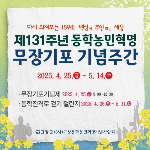 [½Åµ¿¾Æ¹æ¼Û=ÀÌöÇü±âÀÚ] °íⱺÀÌ Á¦131Áֳ⠵¿Çгó¹ÎÇõ¸í ¹«Àå±âÆ÷¸¦ ±â³äÇϱâ À§ÇØ ±â³äÁÖ°£(4¿ù25ÀÏ~5¿ù14ÀÏ)À» ¿î¿µÇÑ´Ù°í 25ÀÏ ¹àÇû´Ù.