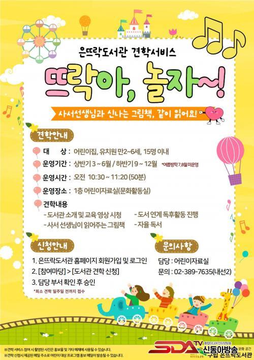 2023³âºÎÅÍ ÁøÇàÇØ ¿Â ¡®¶ß¶ô¾Æ, ³îÀÚ~!¡¯´Â °ü³» ¾î¸°ÀÌÁý ¶Ç´Â À¯Ä¡¿ø ¸¸ 2¼¼ºÎÅÍ 6¼¼ ¿ø¾Æ¸¦ ´ë»óÀ¸·Î ¿î¿µµÈ´Ù. À̹ø °ßÇÐ ¼ºñ½º´Â ÃëÇÐ Àü ¾î¸°À̵éÀÌ µµ¼°üÀ» Ä£¼÷ÇÏ°Ô ´À³¢°í Ã¥¿¡ ´ëÇÑ Èï¹Ì¸¦ ³ô¿© µ¶¼ ½À°ü Çü¼º¿¡ µµ¿òÀ» ÁÖ°íÀÚ ¸¶·ÃµÆ´Ù.