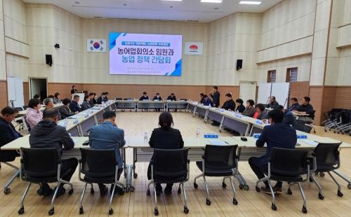 À̹ø °£´ãȸ °ÇÀÇ»çÇ×Àº ¿µ³óºÎ»ê¹° ¾ÈÀüó¸® Áö¿ø»ç¾÷ ÃßÁø¹æÇâ, ±èÁ¦½Ã º Àç¹è¸éÀû °¨Ãà¿¡ ´ëÇÑ ´ëÃ¥, ½Åµ¿Áø º ÅðÃâ¿¡ ´ëÇÑ ¹æ¾È, ¼ÒÇü³ó±â°è Áö¿ø»ç¾÷ ±âÁ¾È®´ë ÃßÁø, º À°¹¦»óÀÚ Ã³¸® Áö¿ø»ç¾÷ ÀÛ¹° È®Àå µî 14°Ç¿¡ ´ëÇØ ÅäÀÇÇϰí, ¶ÇÇÑ ±èÁ¦ ³ó¾÷¹ßÀü¿¡ ÇÊ¿äÇÑ ³ó¾÷Á¤Ã¥ ¹ß±¼°ú Çö¾È¿¡ ´ëÇÑ ÀÇ°ß µîÀ» ±³È¯ÇÏ´Â ½Ã°£À» °¡Á³´Ù.