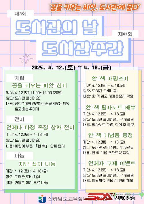 ±âŸ- µµ¼°ü°ú µµ¼°ü ÇÁ·Î±×·¥¿¡ ´ëÇÑ Áö¿ª¹ÎÀÇ °ü½ÉÀ» ³ôÀ̰íÀÚ ¡¸ÇÑ Ã¥ ¼Æò¾²±â¡¹ÀÀ¸ð¿Í ¡¸ÇÑ Ã¥ ÇÊ»ç³ëÆ®¡¹¹èºÎ, ÇÑ Ã¥ Æ÷½ºÆ®ÀÕ ÁõÁ¤ Çà»çµµ ÁøÇàÇÑ´Ù. ¡®ÇÑ µµ¼°ü ÇÑ Ã¥ ÇÔ²² Àб⡯ ¼±Á¤ µµ¼¸¦ ÀÐ°í ¼Æò¿±¼¿Í ÇÊ»ç³ëÆ®¸¦ ÀûÀ¸¸é¼ ±íÀÌ ÀÖ´Â µ¶¼¸¦ Çϰí, Ãß÷Çà»ç¿¡µµ ÀÀ¸ð °¡´ÉÇÏ´Ù. °¢ ÀÚ·á½Ç¿¡¼´Â µµ¼°üÁÖ°£¿¡ ¹Ì³³ ÀڷḦ ¸ðµÎ ¹Ý³³ ½Ã, ¿¬Ã¼ ÀÌ·ÂÀ» Áö¿öÁÖ´Â ¿¬Ã¼ÀÚ ±¸Á¦ À̺¥Æ®µµ ½Ç½ÃÇÑ´Ù.