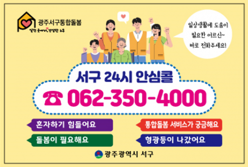 ¡®24½Ã ¾È½ÉÄÝ¡¯Àº ½º¸¶Æ®µ¹º½Á¤º¸¼¾ÅÍ ÀüÈ(062-350-4000) ÇÑ ÅëÀ¸·Î Á¢¼öºÎÅÍ »ó´ã, 󸮱îÁö ¿ø½ºÅé ¼ºñ½º°¡ °¡´ÉÇϸç Á¢¼öµÈ ³»¿ëÀº ´ã´çºÎ¼¿Í µ¹º½Áö¿ø±â°ü, ¼Ò¹æ°ú °æÂû¼ µî¿¡ ½Ç½Ã°£À¸·Î °øÀ¯ÇØ ½Å¼ÓÇÑ ´ëÀÀ°ú ¸ÂÃãÇü µ¹º½¼ºñ½º¸¦ Áö¿øÇÑ´Ù.