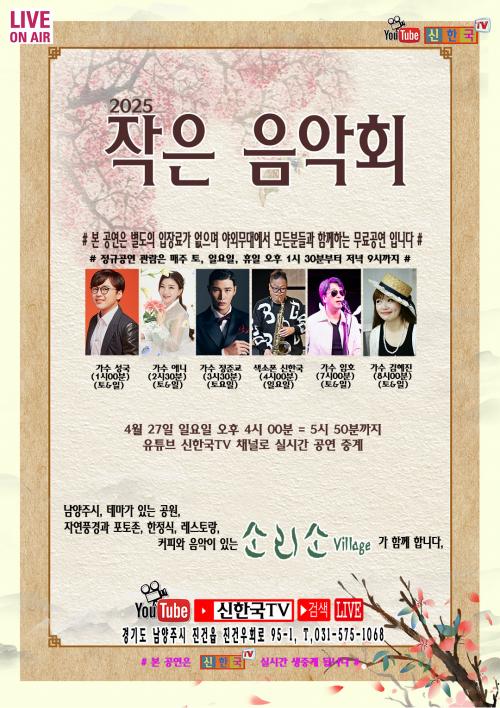 ¿ÀÈÄ 3½Ã 30ºÐ¿¡´Â Æ®·ÎÆ®¿Í ÆÛÆ÷¸Õ½º¸¦ °áÇÕÇÑ ¹«´ë¸¦ ¼±º¸ÀÌ´Â °¡¼ö Á¤Áر³°¡ µîÀåÇϸç Èï°Ü¿î ºÐÀ§±â¸¦ ÇÑÃþ ²ø¾î¿Ã¸°´Ù. ´ÙÀ½À¸·Î ½ÅÇѱ¹ »ö¼ÒÆ÷´Ï½ºÆ®°¡ ÀÏ¿äÀÏ ¿ÀÈÄ 4½Ã ¹«´ë¿¡¼ À帣¿¡ ±¸¾Ö¹ÞÁö ¾Ê°í °ü°´µéÀÇ Áï¼® ½Åû°îÀ» ¿¬ÁÖÇÏ¸ç °¨µ¿ÀûÀÎ ¼ø°£À» ¸¸µé¾î³½´Ù. ÀÌ °ø¿¬Àº ±×ÀÇ À¯Æ©ºê ä³Î ¡®½ÅÇѱ¹TV¡¯¸¦ ÅëÇØ ½Ç½Ã°£ ¹æ¼Ûµµ ÁøÇàµÉ ¿¹Á¤ÀÌ´Ù.