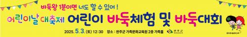 À̹ø ¹ÙµÏ üÇè ¹× ´ëȸ´Â 5¿ù 3ÀÏ, ¿ÏÁÖ±º °¡Á·¹®È±³À°¿ø °¡Á·È¦¿¡¼ ÁÖ)¾Æ½Ã¾Æ(´ëÇ¥ ¿ÀÀμ·)ÀÇ ÇùÁ¶·Î ÁøÇàµÇ¸ç, ¹ÙµÏ¿¡ °ü½É ÀÖ´Â ¾î¸°ÀÌ ´©±¸³ª Âü¿©ÇÒ ¼ö ÀÖ´Ù.