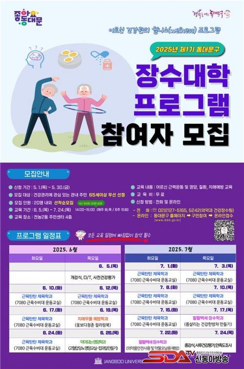 ½Åû ±â°£Àº 5¿ù 1ÀϺÎÅÍ 5¿ù 30ÀϱîÁö´Ù. Âü¿©¸¦ ¿øÇÏ´Â ±¸¹ÎÀº µ¿´ë¹®±¸ ÀǾà°ú °Ç°Àå¼öÆÀ(¢Ï02-2127-5165, 5242)À¸·Î ÀüÈÇϰųª, µ¿´ë¹®±¸ ´©¸®Áý>±¸¹ÎÂü¿©>¿Â¶óÀÎÁ¢¼ö¸¦ ÅëÇØ ½ÅûÇÏ¸é µÈ´Ù.