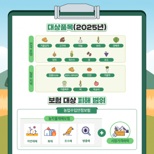 ¿ÃÇØ Àü¸é È®´ë¡¤°³ÆíµÈ ³ó¾÷¼öÀÔ¾ÈÁ¤º¸ÇèÀº Àü±¹ ½ÃÇàǰ¸ñ 9°³¿Í ƯÁ¤ Áö¿ª ½Ã¹ü¿î¿µ ǰ¸ñ 6°³¸¦ Æ÷ÇÔÇØ ÃÑ 15°³ ǰ¸ñÀ¸·Î ¿î¿µµÇ°í ÀÖ´Ù. µµ³» 14°³ ½Ã±ºÀº º»»ç¾÷ 9°³ ǰ¸ñ¿¡ ´ëÇØ °¡ÀÔÇÒ ¼ö ÀÖÀ¸¸ç, ³²¿ø½Ã¿Í ÀӽDZºÀº º¹¼þ¾Æ°¡ ½Ã¹üǰ¸ñÀ¸·Î Ãß°¡µÇ¾î 10°³ ǰ¸ñ °¡ÀÔÀÌ °¡´ÉÇÏ´Ù.