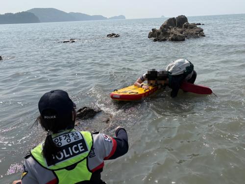 ½Å°í 9ºÐ¸¸¿¡ ÇöÀå¿¡ µµÂøÇÑ ±¸Á¶ÆÀÀº ¼ö½É°ú °¹¹ÙÀ§ ÁöÇü Ư¼º»ó ±¸Á¶º¸µå¸¦ ÀÌ¿ëÇØ ¼ö¿µÀ¸·Î Á¢±Ù, °í¸³ÀÚ¸¦ ¾ÈÀüÇÏ°Ô ±¸Á¶ÇÑ µÚ ÇØ¾ÈÀ¸·Î À̼ÛÇß´Ù. A¾¾´Â ´ÙÇàÈ÷ °Ç°¿¡´Â ÀÌ»óÀÌ ¾ø¾úÀ¸¸ç, ÇöÀå ÀÀ±Þ È®ÀÎ ÈÄ º°´Ù¸¥ Ä¡·á ¾øÀÌ ±Í°¡ Á¶Ä¡µÇ¾ú´Ù.