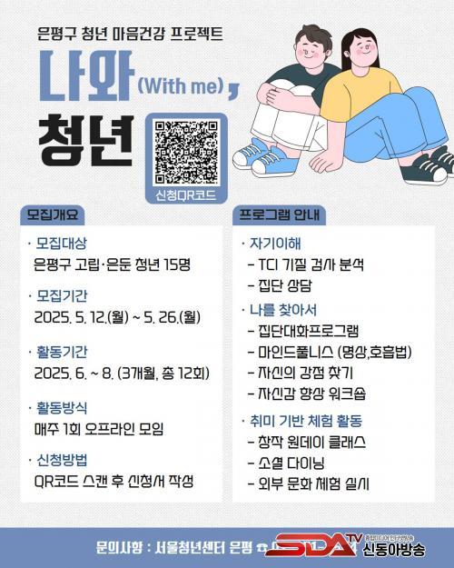 ¡®Ã»³â¸¶À½°Ç° ÇÁ·ÎÁ§Æ®, ³ª¿Í(with me) û³â¡¯Àº Á¦8±â ÀºÆò û³â³×Æ®¿öÅ©¿¡¼ Á¦¾ÈµÅ ÀºÆò±¸ Âü¿©¿¹»ê û³â ºÐ¾ß ±¸ Á¤Ã¥»ç¾÷ ÅõÇ¥¸¦ ÅëÇØ ¼±Á¤µÆ´Ù. ÀÌ´Â ÀºÆòÇü ´Ü°èÀû ȸº¹ ÇÁ·Î±×·¥À» ÅëÇØ Âü¿© û³âÀÌ ½º½º·Î¸¦ ÀÌÇØÇÏ°í »çȸ ÀçÁøÀÔ¿¡ ´ëÇÑ ºÎ´ã°¨À» ÃÖ¼ÒÈÇÒ ¼ö ÀÖµµ·Ï Áö¿øÇÏ´Â ÇÁ·Î±×·¥ÀÌ´Ù.