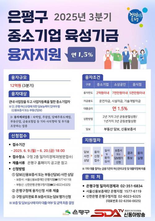 À̹ø 3ºÐ±â¿¡´Â ÃÑ 12¾ï ¿ø ±Ô¸ðÀÇ À¶ÀÚ±ÝÀÌ Æí¼ºµÇ¾úÀ¸¸ç, ÀºÆò±¸ °ü³» »ç¾÷ÀåÀ» µÎ°í »ç¾÷ÀÚµî·ÏÀ» ÇÑ Áß¼Ò±â¾÷°ú ¼Ò»ó°øÀÎÀÌ Áö¿ø ´ë»óÀÌ´Ù.