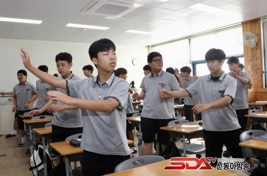 ¸ñÆ÷´öÀÎÁßÇб³ ÇлýµéÀÌ ¾ÆÄ§Ã¼Á¶¸¦ Çϰí ÀÖ´Ù.